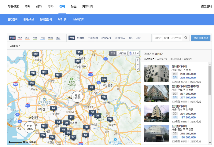 - 무료로 기본적인 경매 물건 정보 검색 가능
